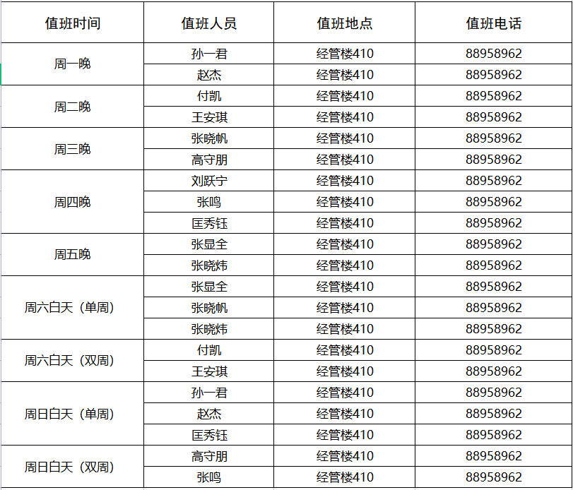 xvideo 学工队伍2021-2022学年第二学期常态化值班安排表