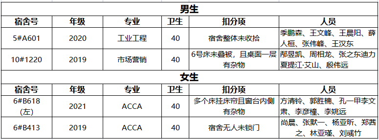 不合格宿舍如下: