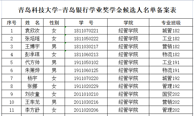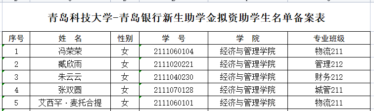 》的要求,经个人申请、材料审核,结合前期奖助学金获得情况,现对青岛银行奖助学金获得者予以公示,公示期3个工作日,公示时间2022年4月25日-2022年4月27日。