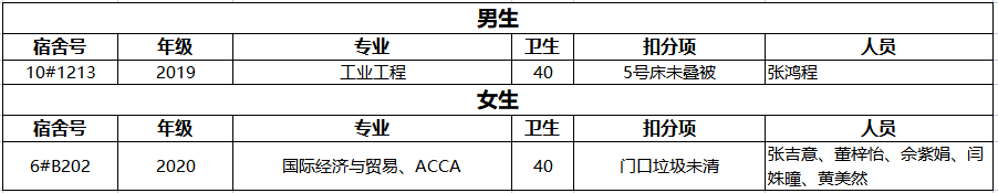 不合格宿舍如下: