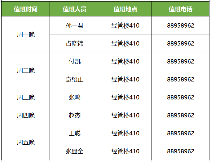 xvideo 学工队伍2022-2023学年第一学期常态化值班安排表