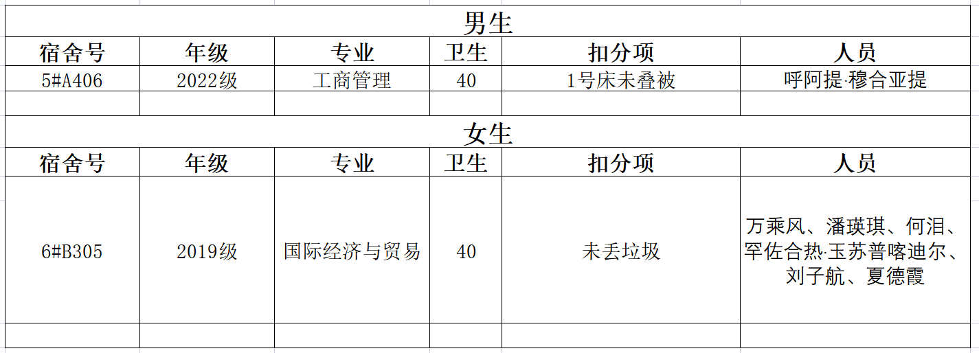 卫生检查结果及扣分细则请见附件,请各年级对照问题监督好不合格宿舍的整改。