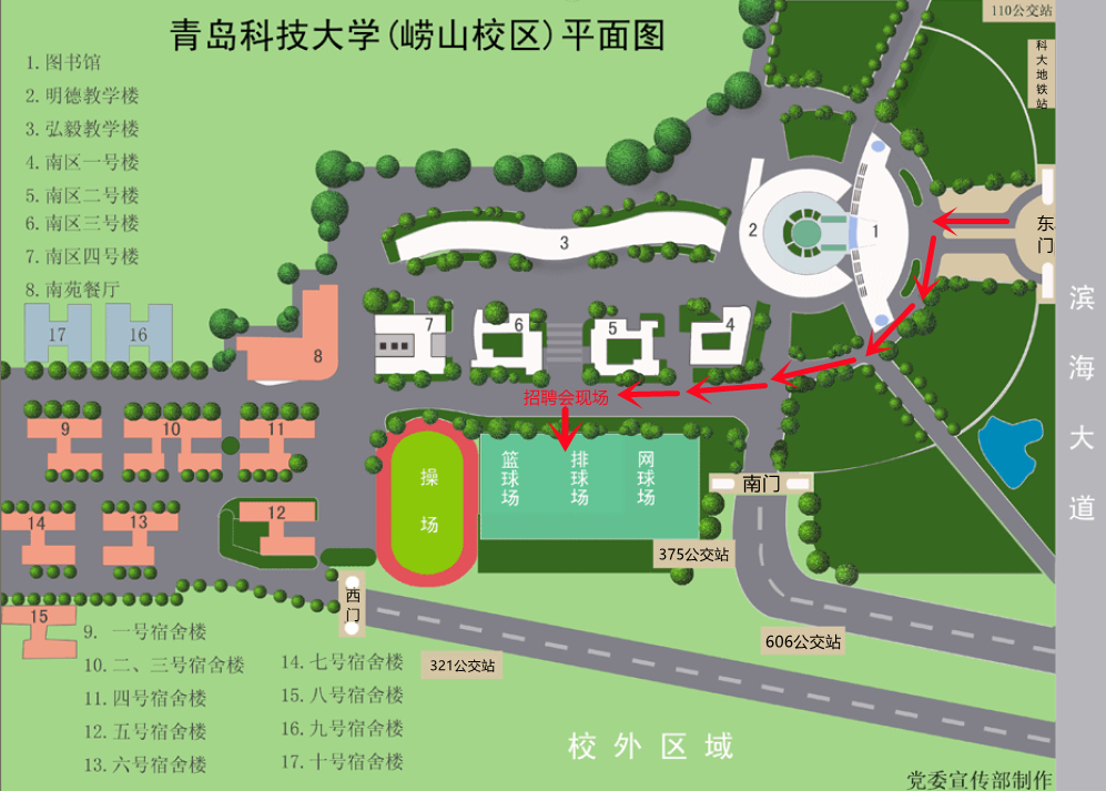 崂山校区弘毅广场外篮球场,建议乘坐公共交通工具到校,自驾车请从东门(松岭路)入校,入校后左拐,直行500米左右,即可到达报道地点。车辆请按指定位置停放。