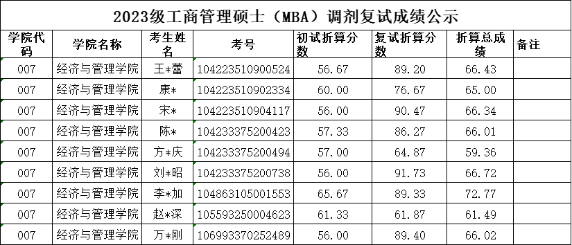 按照学校要求,经学院复试考核,现对xvideo 2023年硕士研究生调剂复试成绩予以公示,若对复试成绩有异议,请联系学院。 于老师0532-88957399(金融专硕) 陈老师0532-88956657(MBA) 柳老师0532-88959202(MPACC)