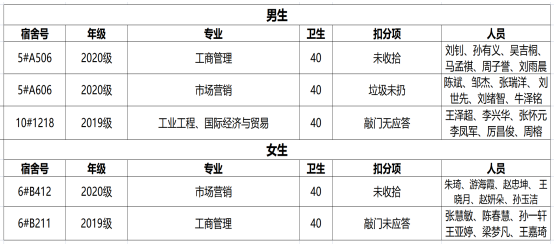 卫生检查结果及扣分细则请见附件,请各年级对照问题监督好不合格宿舍的整改。