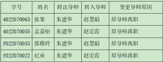 xvideo 因一名导师离职,4名研究生需要更换导师,经学生个人申请、征求导师意见、学院学位委员会审议,现将变更导师结果公示如下:
