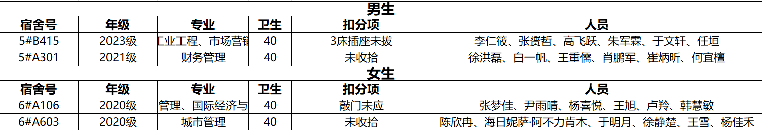 不合格宿舍如下: