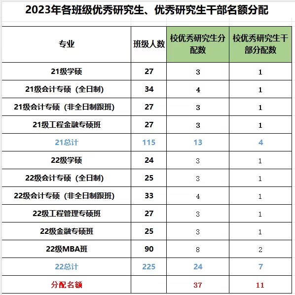 2023年校优秀研究生总指标共37个,校优秀研究生干部总指标共11个,现将校优秀研究生和优秀研究生干部名额分配如下: