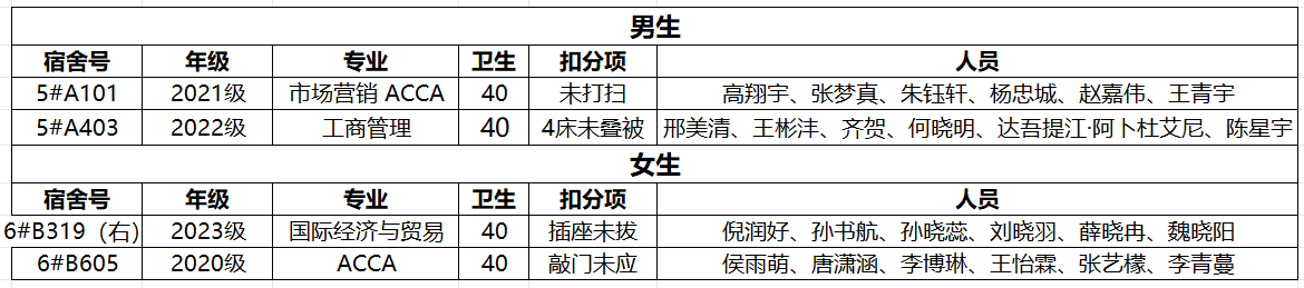 不合格宿舍如下: