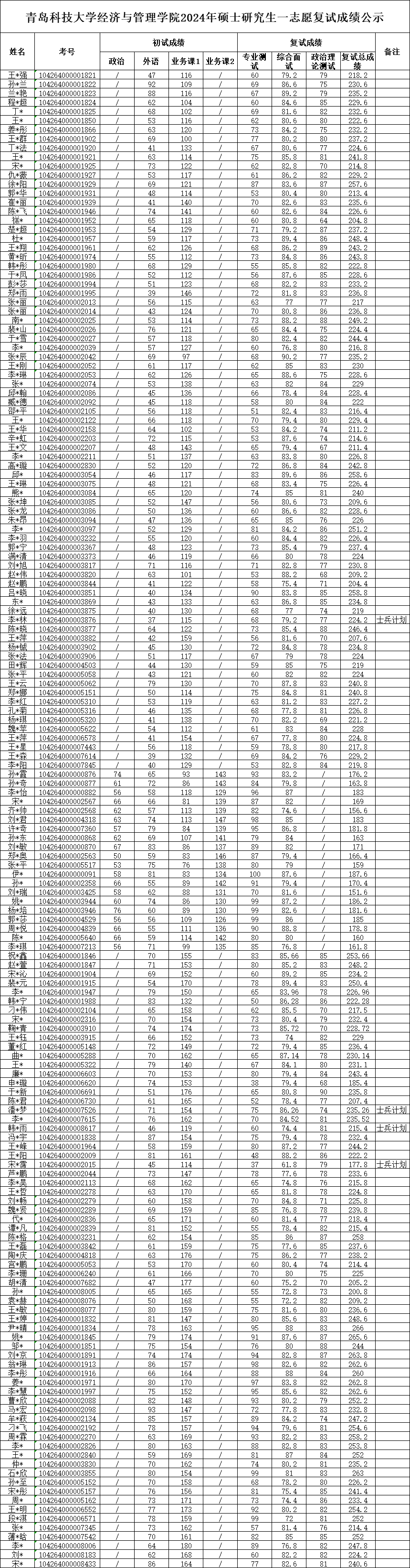 按照学校要求,经学院复试考核,现对xvideo 2024年硕士研究生一志愿复试成绩予以公示,若对复试成绩有异议,请联系学院。