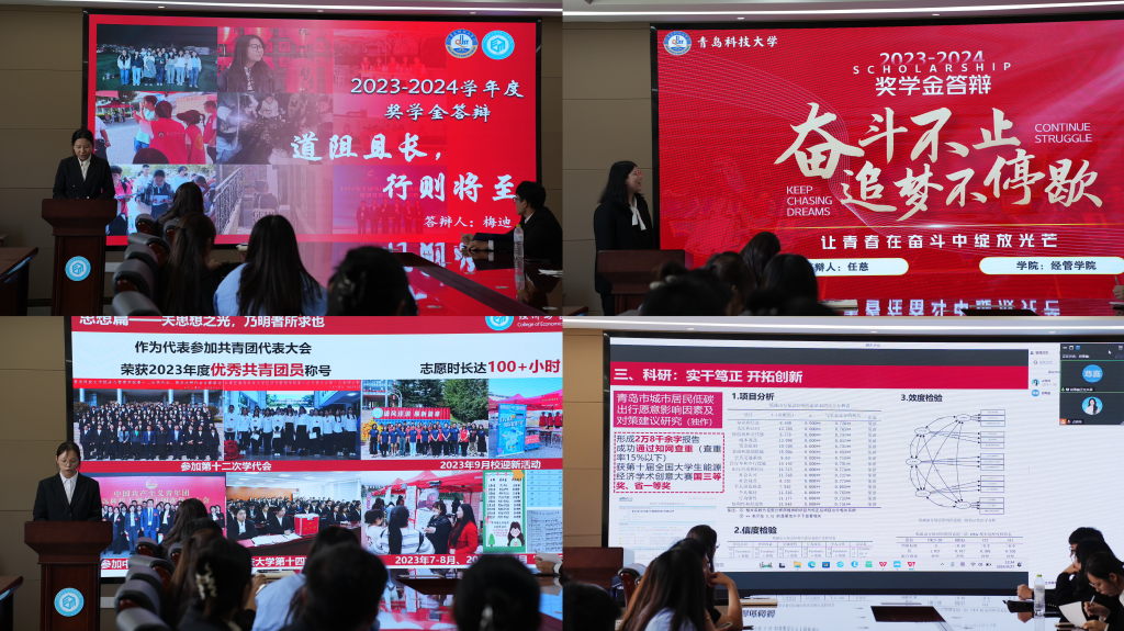 会议伊始,占晓祎对国家奖学金、省政府奖学金的申请条件、名额分配、评审程序及要求等做了详细的介绍。候选人依次上台答辩,通过个人陈述、PPT展示等全面介绍了自己在学业成绩、科研创新、社会实践、志愿服务等方面的成绩。每位候选人都以饱满的热情、清晰的逻辑、生动的语言向评委们展现了各自独特的魅力与风采。答辩现场,气氛热烈而庄重,学院评审委员会秉持公正、公平、公开的原则,认真聆听每一位候选人的答辩,力求选出最能够代表学院形象、引领青年风尚的奖学金获得者。