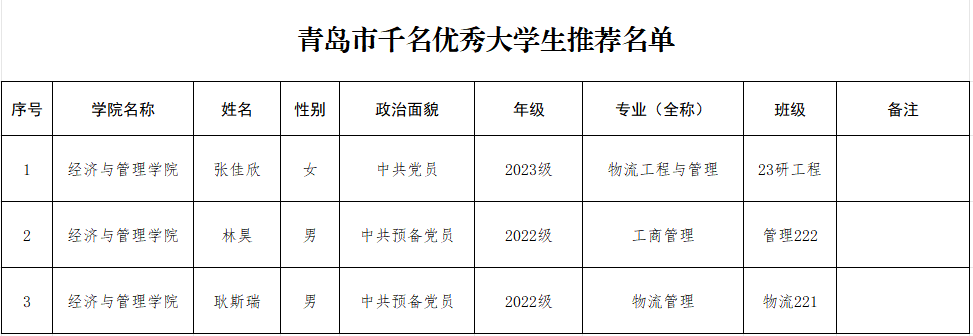 【公示】xvideo 关于“青岛市千名优秀 大学生”候选人的公示