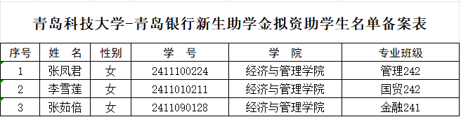 根据学校《关于评审2024年度青岛银行奖助学金的通知》的要求,经个人申请、材料审核,结合前期奖助学金获得情况,现对青岛银行奖助学金获得者予以公示,公示期3个工作日,公示时间2025年5月27日-2025年5月29日。
