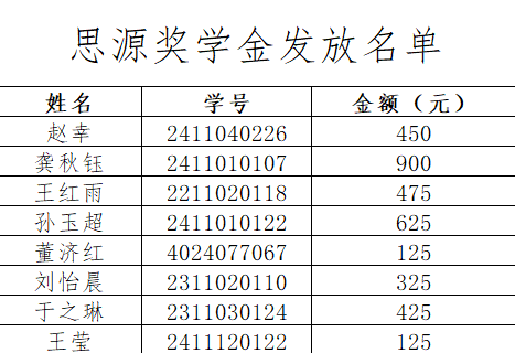为鼓励先进,树立榜样,营造良好的学习实践氛围,对在学习、实践等方面表现突出或者因突发状况导致家庭经济困难的学生进行一定数额奖(助)学金的鼓励和支持。根据学院思源奖学金评选要求,经学院研究,决定对在2025年校学生运动会中表现优异的先进个人发放思源(体育)奖学金并予以表彰。现对获得者名单予以公示,有意见或建议者,请于公示期内,以电话或者书面形式向xvideo