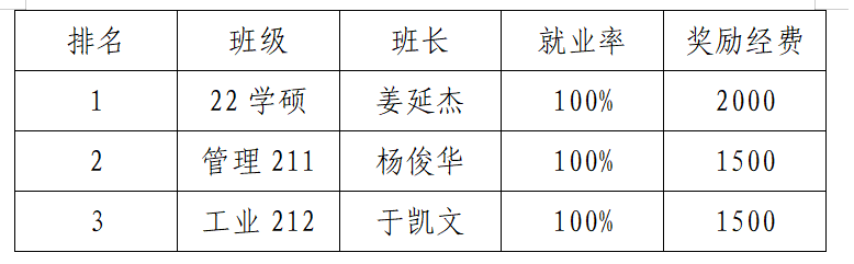根据青科大经管字〔2024〕14号《xvideo 就业工作激励办法(试行)》的考核奖励要求,现对学院毕业生班集体奖励公示如下: