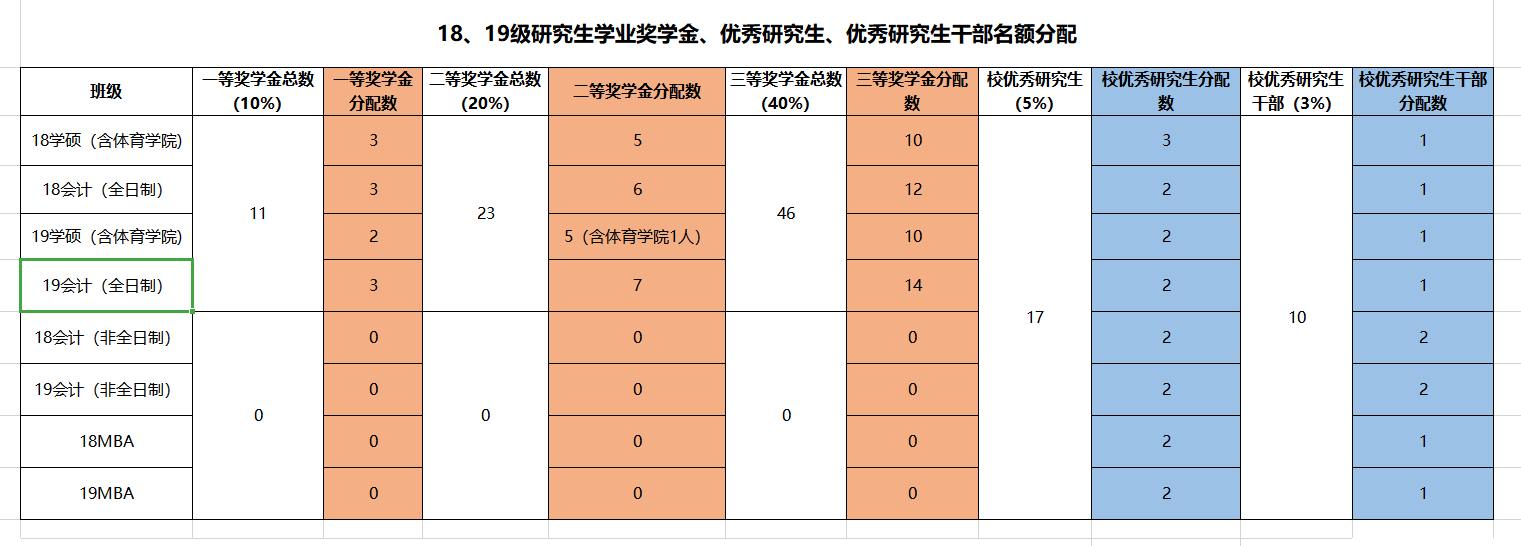 文件研究生学业奖学金管理办法(修订稿)》(青科大字〔2015〕58号)文件精神,结合校关于做好2020年研究生学业奖学金评选工作的通知,现将研究生学业奖学金、校优秀研究生、校优秀研究生干部名额分配如下: