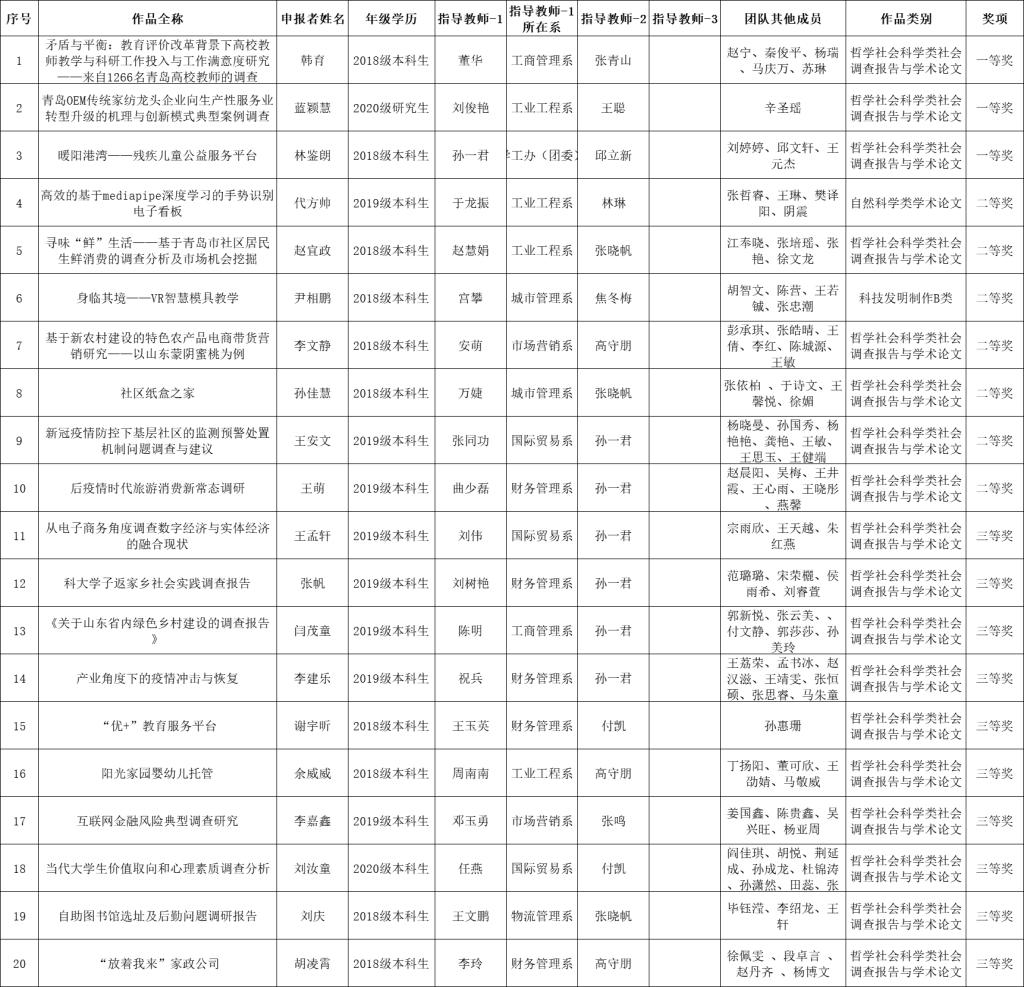 希望学院各参赛团队指导教师继续做好项目指导,各参赛团队学生持续加强与指导老师的沟通交流,进一步完善项目作品,提升作品质量,力争取得更加优异的成绩。接下来,2021年南风窗“调研中国 青年领导力公益平台”社会调查活动、“调研山东”社会调查活动等比赛将陆续开展,请相关团队及时关注后续通知,积极参赛。