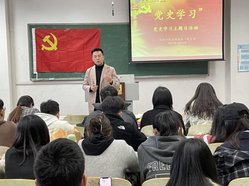 本科生第一党支部于明德楼215组织开展了“学习百年党史,凝聚奋进力量”主题党日活动,全体党员参加了本次活动。
