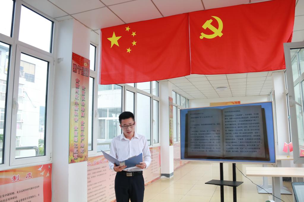 党总支在“领航”党建活动室组织开展了“两学一做红色朗读——一党员一段文”第四期活动,本科生党支部全体党员参加。