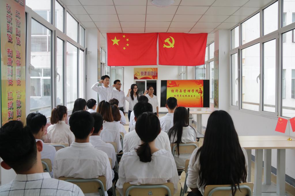 在“领航”党建活动室组织开展了给党员过“政治生日”活动,本科生党支部全体党员参加。