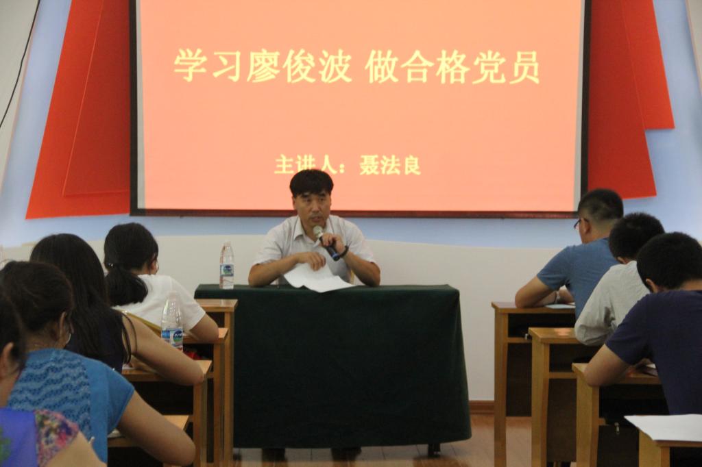 学院党总支书记聂法良在教育基地主讲题为《学习廖俊波做合格党员》的党课。课上,聂法良指出,廖俊波同志是一面旗帜,让全体党员干部学有榜样,行有示范;是一面镜子,让全体党员干部照出不足,照出差距,明确努力的方向;是一本党课教材,让全体党员不忘初心,继续前进。全体党员都应学习廖俊波信念坚定,对党忠诚的政治品质;学习他心系群众,造福一方的为民情怀;学习他立足岗位,真抓实干的务实作风;学习他奋发有为,锐意进取的担当精神;学习他无私奉献,克己奉公的清廉本色。他强调,全体党员务必要讲政治有信念,讲规矩有纪律,讲道德有品行,讲奉献有作为,做到“四个合格”,在推进学院发展中发挥先锋模范作用。