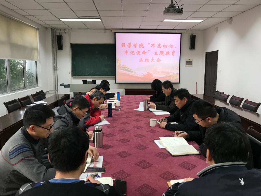 “不忘初心、牢记使命”主题教育总结大会于经管楼415会议室召开,会议传达了习近平总书记在“不忘初心、牢记使命”主题教育总结大会上的讲话精神,强调了学校主题教育总结大会要求,同时全面总结了学院主题教育情况,对巩固深化主题教育成果进行安排部署。本次大会由学院党总支书记李德成主持,学院领导班子、各党支部书记代表出席会议。