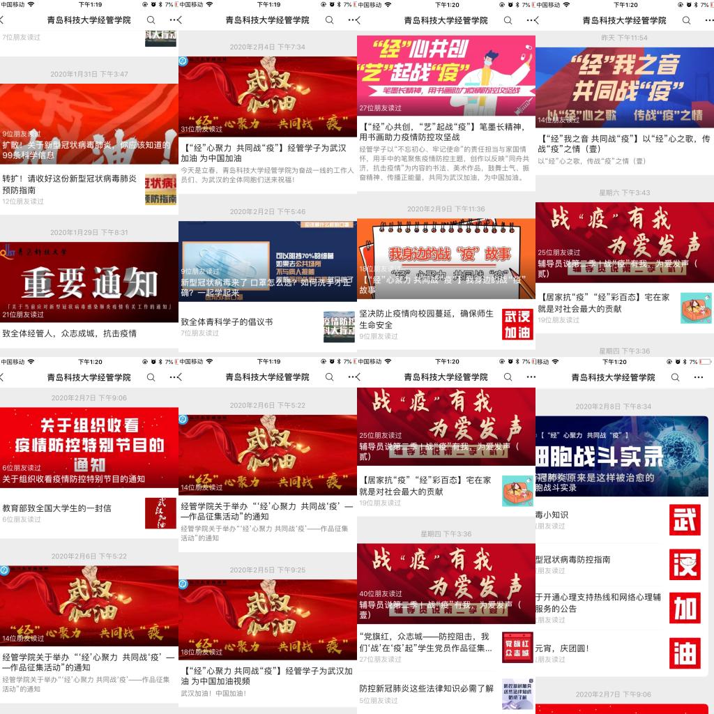 抗疫当前,每个人都是防线,每个青年都是战士。为助力打赢新冠肺炎疫情防控阻击战,经管学子纷纷行动起来,在做好自我防护的前提下,以力所能及的方式投入到防控一线工作中去。他们有的坚守在宣传一线为大家把疫情防控相关信息及时准确地发布;有的通过绘画、书法、撰稿的方式在网络上积极传递正能量;有的争当志愿者在当地社区疫情防控工作中发挥自己的光和热;有点通过官方渠道参与捐款活动,为抗击疫情贡献爱心。凝心聚力,冲锋一线,用行动彰显了新时代青年学子的热血担当。