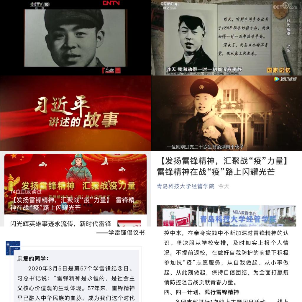 学院学生党支部在线上举行了特别的主题党日活动,全体学生党员一起“云学习”雷锋纪录片、重读雷锋日记,观看《2019感动中国十大人物》,并针对新时代的雷锋精神展开分享交流。16级党员苏展波说:“今年这个纪念日太过特别,尽管疫情防控形势发生了积极变化,但战“疫”未止,每个人都在用各自的方式为防控疫情努力着。雷锋,曾给我们种下过一颗叫做“奉献”的种子,如今这颗种子长成了千万棵为民遮风避雨的大树。作为新时代青年,我们既要学习雷锋的精神,也要学习雷锋的做法,把雷锋精神代代传承下去。”