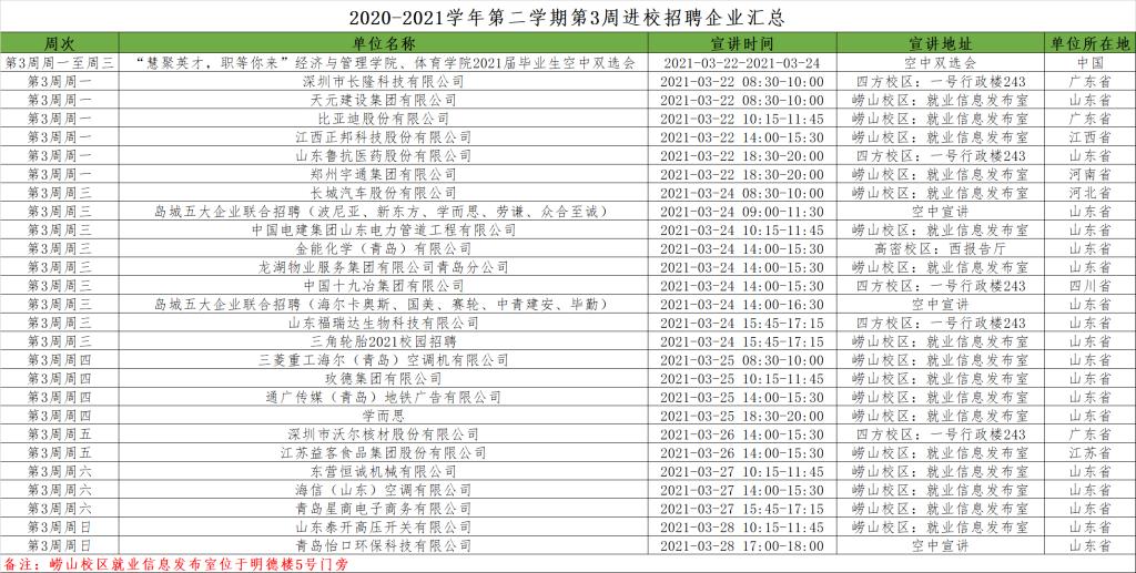 2020-2021学年第2学期第3周,进入我校进行宣讲招聘的企业名单如下,均为涉及xvideo