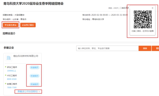 2020届毕业生春季网络招聘会”(//job.x-videos.org/largefairs/view/id/719/domain/qust)专区,或扫描网络招聘会二维码(见附件2)申请预定展位,发布招聘信息,学校将根据企业规模性质、与学校专业匹配度等择优审核,与学校建立合作关系、长期到校招聘的企业优先。学校审核通过后,企业招聘信息即可在本次招聘会网络平台显示。本次招聘会将同步生成企业微信二维码,以方便在微信端操作。特别提醒的是因网络招聘,请企业按平台提示要求,完整清楚的填写企业简介及招聘岗位信息,以免造成信息失真。