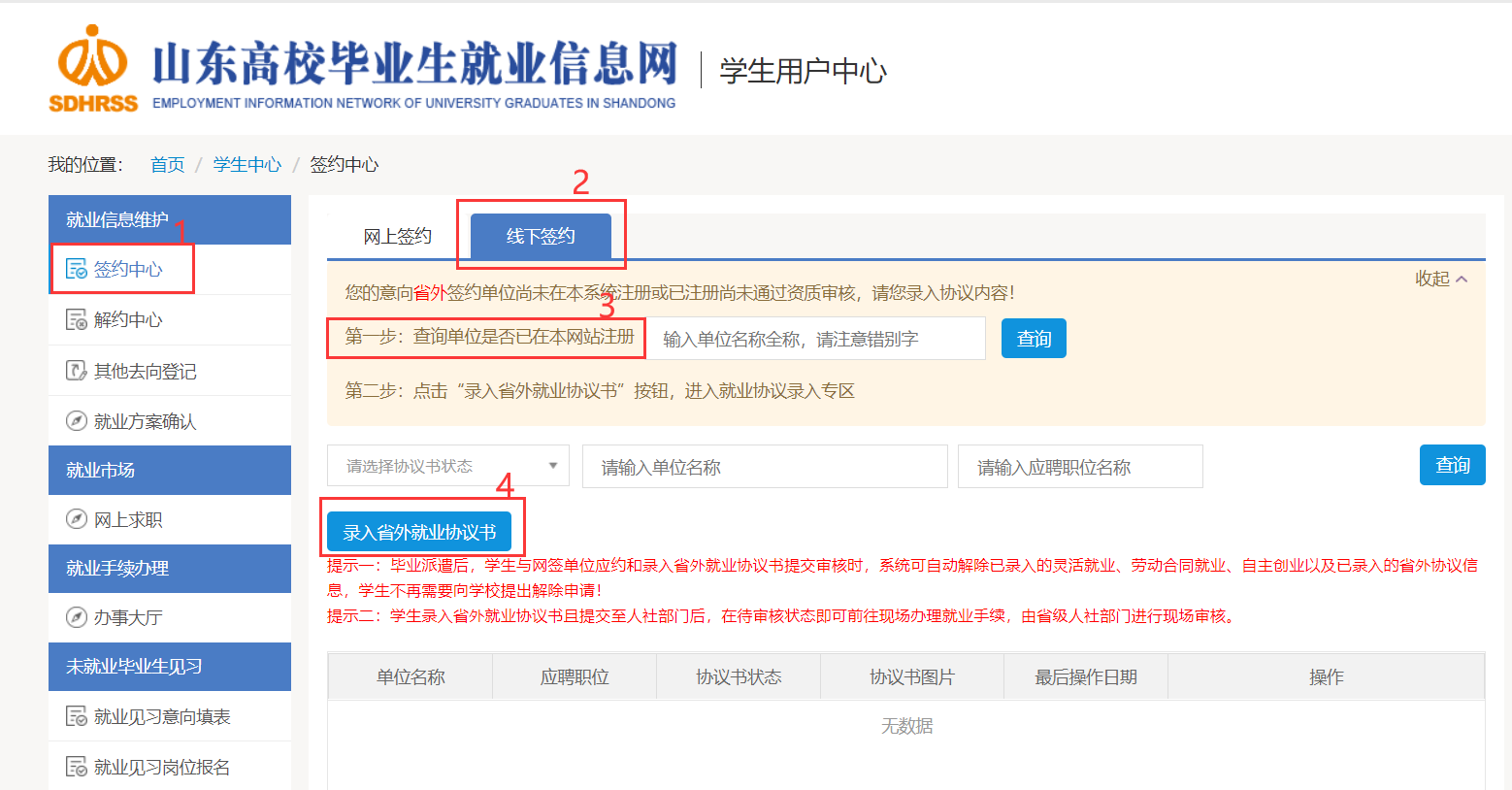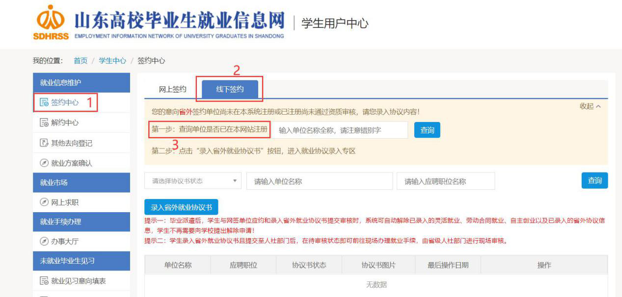 重要提示:已领取纸质版三方协议的毕业生,网签功能锁定,只能选择“线下签约”-“录入省外协议书”的方式签约。