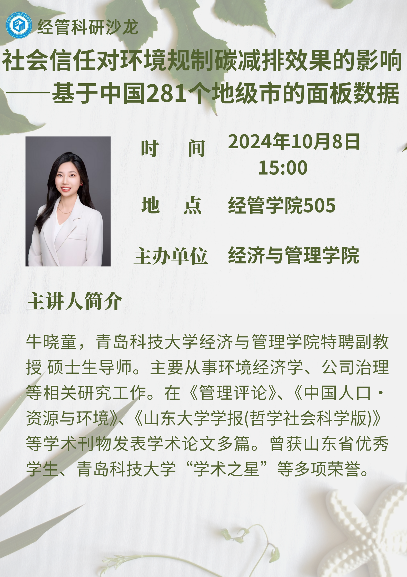 社会信任对环境规制碳减排效果的影响-----基于中国281个地级市的面板数据-牛晓童