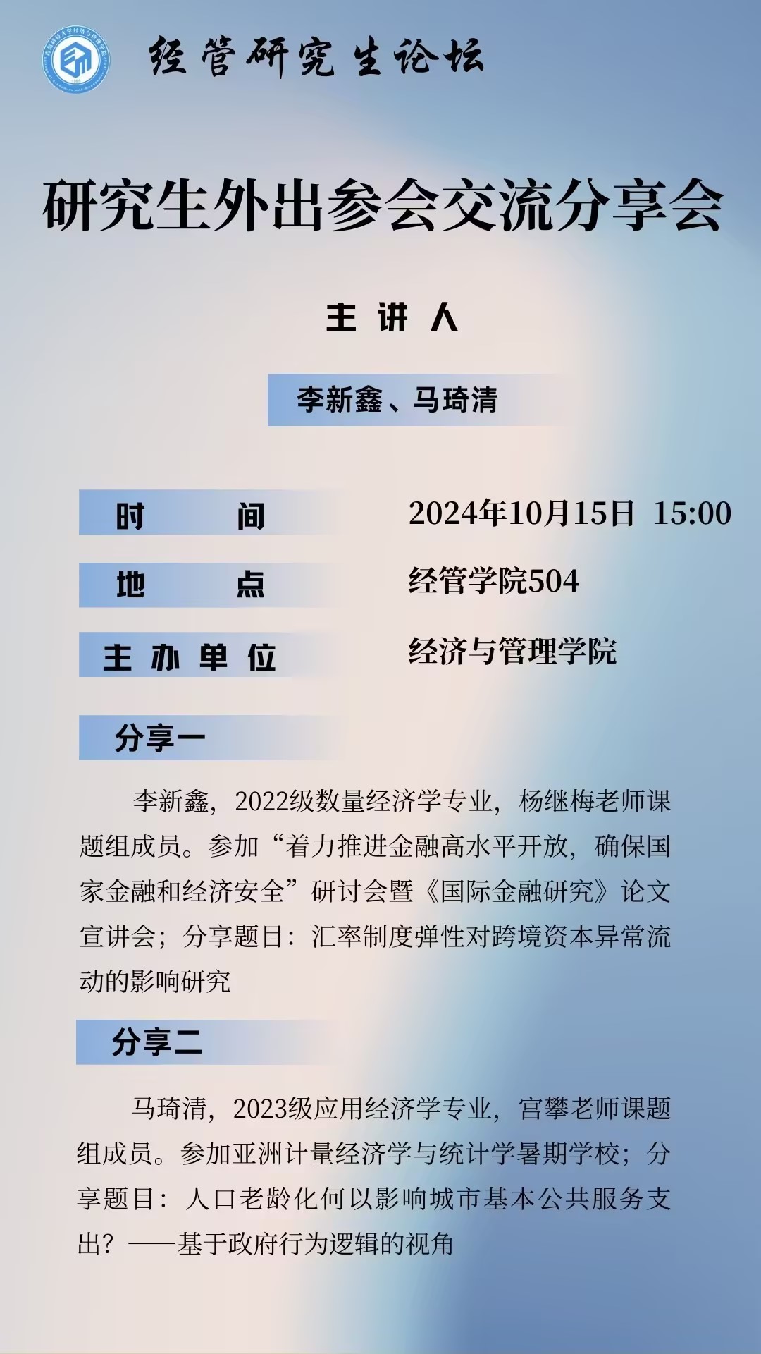 研究生外出参会交流分享会-李新鑫、马琦清