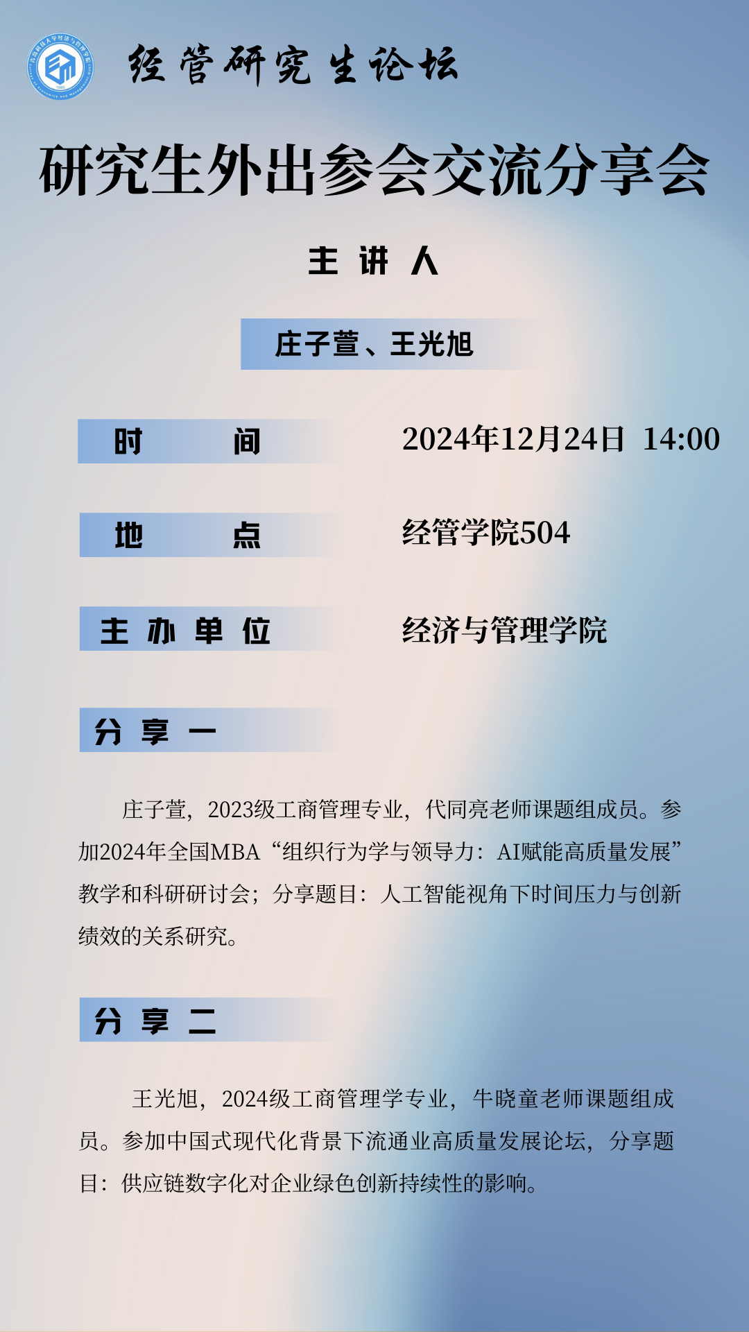 研究生外出参会交流分享会——庄子萱、王光旭