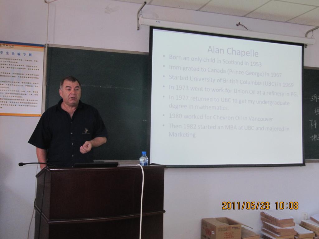 Alan教授MBA毕业后,在温哥华岛大学参与MBA教学工作,对加拿大MBA的课程设置、培养过程了解深入。Alan教授从其学习背景,从加拿大的人文环境、经济环境等方面分析了加拿大MBA的培养特色与发展状况。其生动、形象、幽默的语言加深了学员们的印象,赢得了与会师生们的阵阵掌声。Alan教授与我校有着长期的学术交流活动,对我校有着非常深的感情,他希望两校MBA学员今后也能有更多的交流机会。