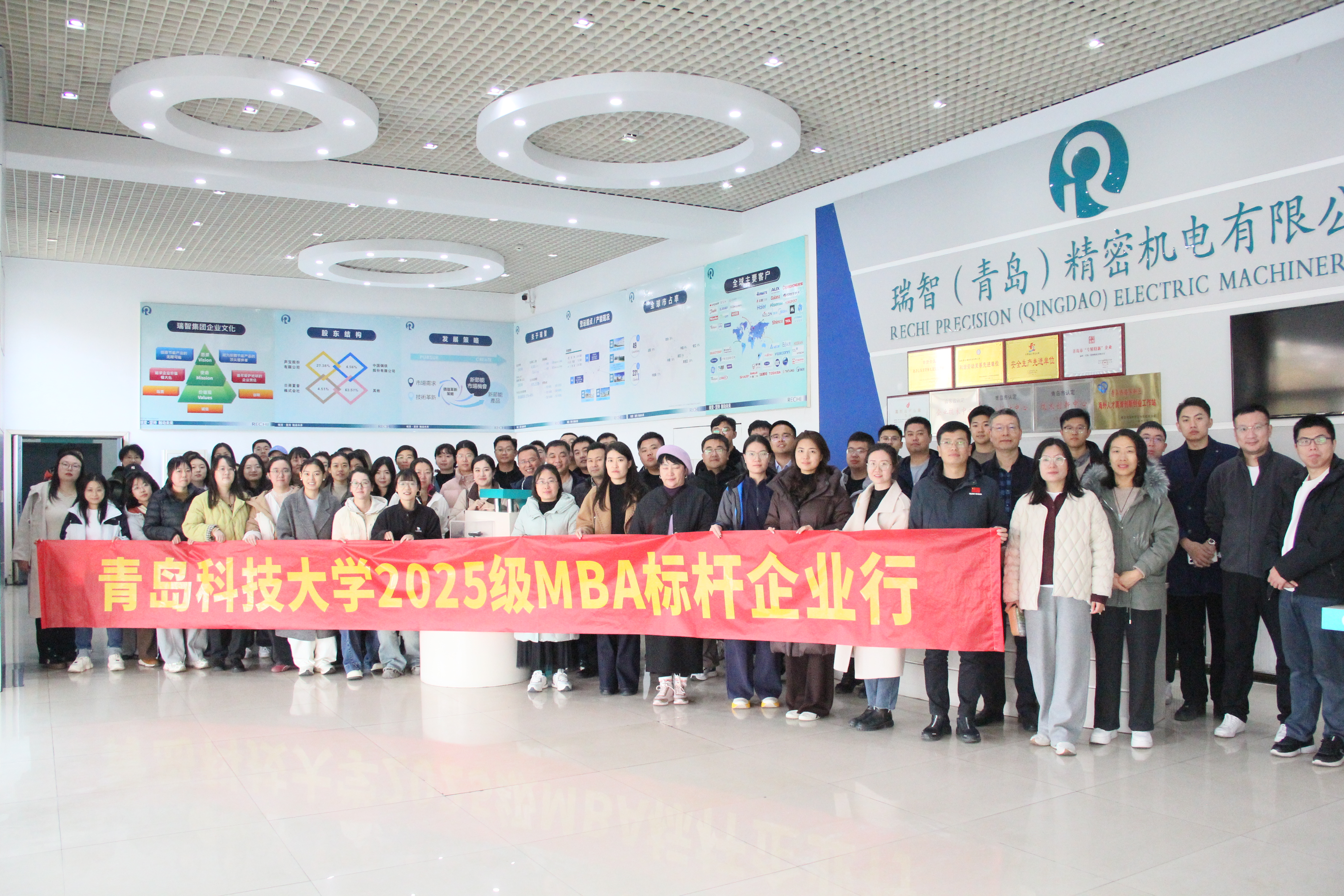 下午,师生们抵达了瑞智(青岛)精密机电有限公司。瑞智是全球第四大转子压缩机企业,其产品广泛应用于空调、热泵、干衣机等领域,外销份额在国内同行业中位居第二。在2024级MBA学员、瑞智(青岛)精密机电有限公司总经理王周强的带领下,大家对压缩机生产线和研发中心进行了深入参观。
