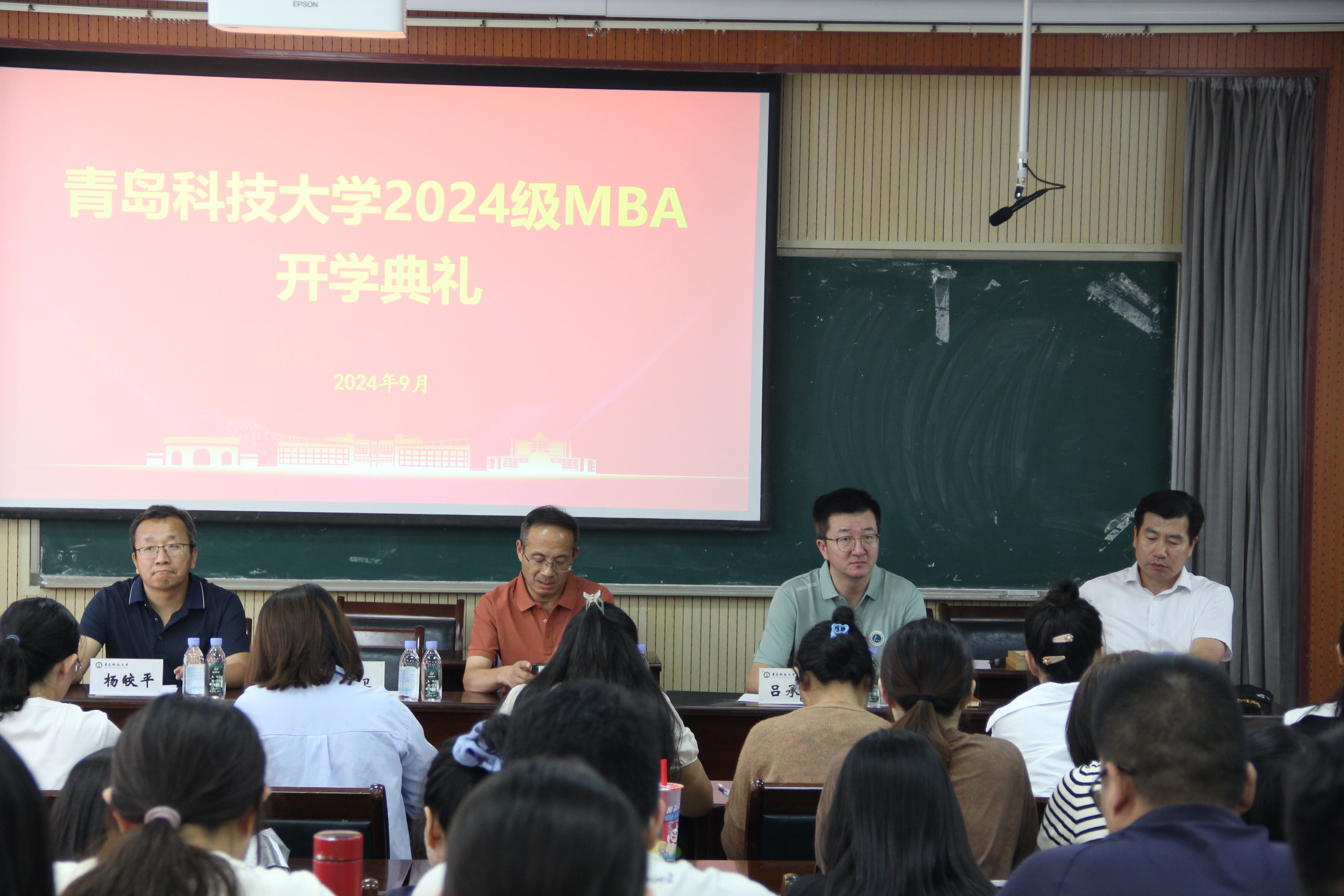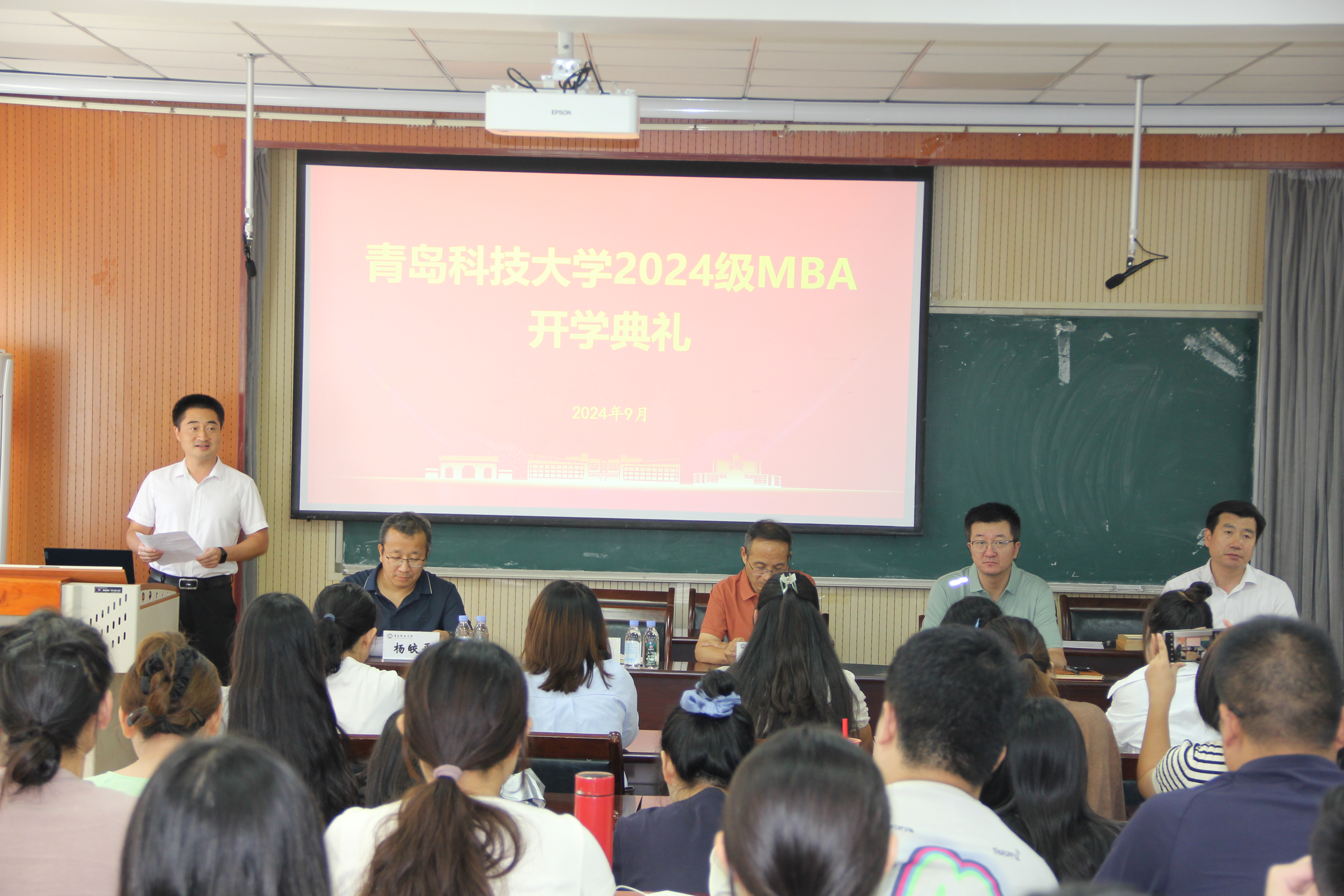 党委书记李勋来,院长、MBA教育中心主任吕承超,MBA教师代表、工商管理系主任杨皎平,2019届MBA校友代表、中车青岛四方机车车辆股份有限公司总包事业部副总经理张伟,MBA教育中心老师和2024级MBA全体新生共同出席典礼。