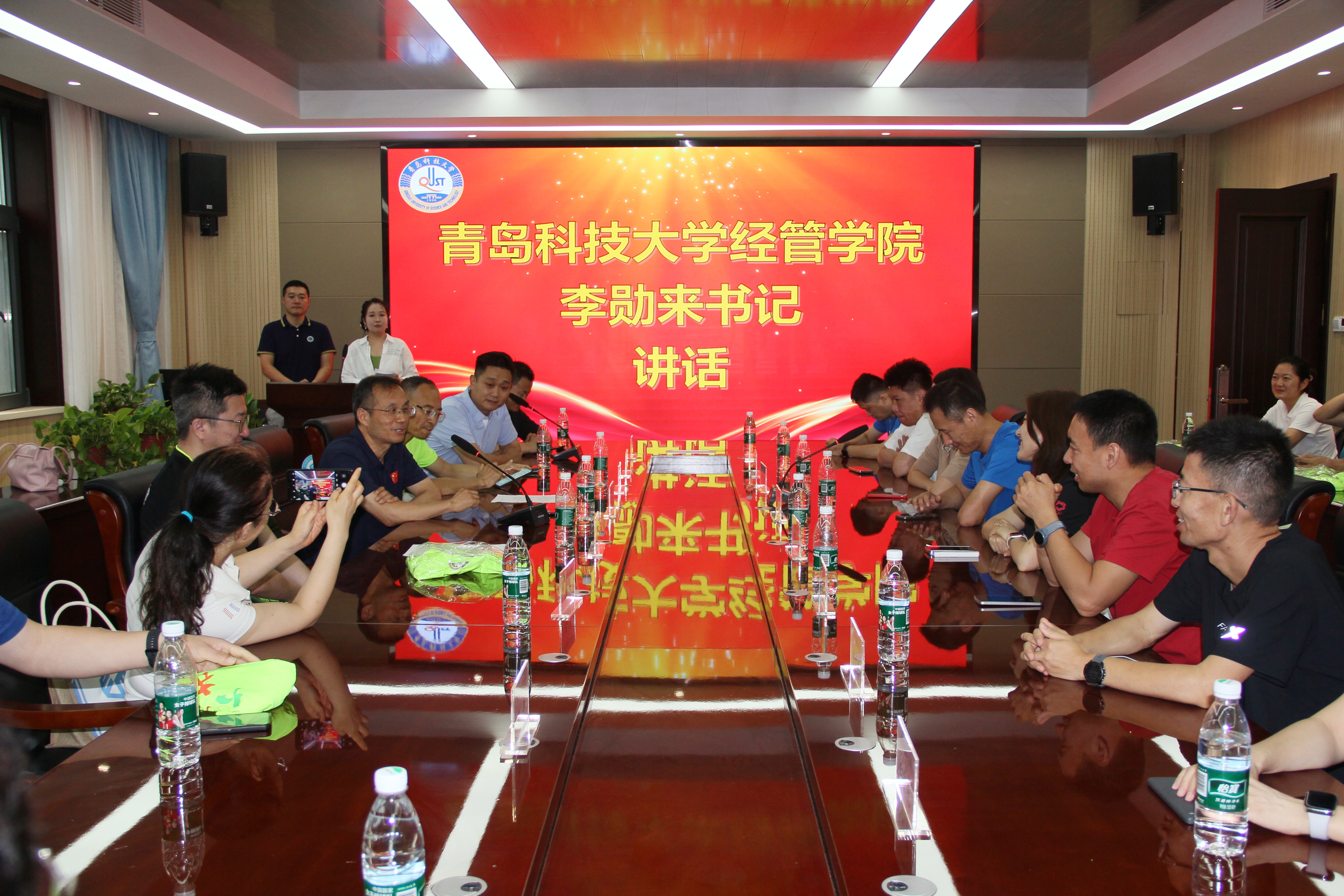 党委书记李勋来、兄弟院校跑团代表、青科大MBA校友以及跑团成员参加仪式,仪式由2023级MBA学员郭子健、王润璐主持。