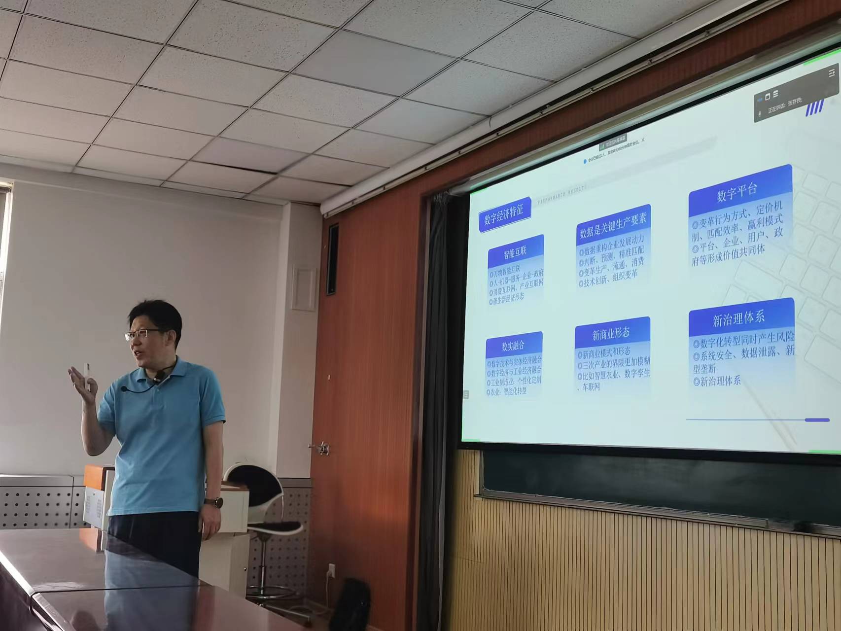 于升峰老师以习近平总书记“数字经济事关国家发展大局”重要论述为报告开题,分别从认识数字经济、数字经济发展规律、把握数字经济发展趋势三个层面展开报告。