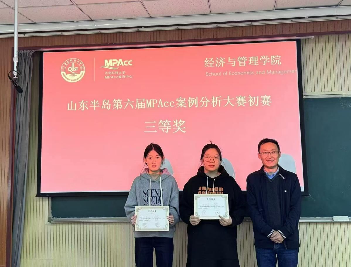 最后,由祝兵老师,张占贞老师,张先敏老师为在山东半岛第六届MPAcc案例大赛初赛中获奖的队伍颁奖。