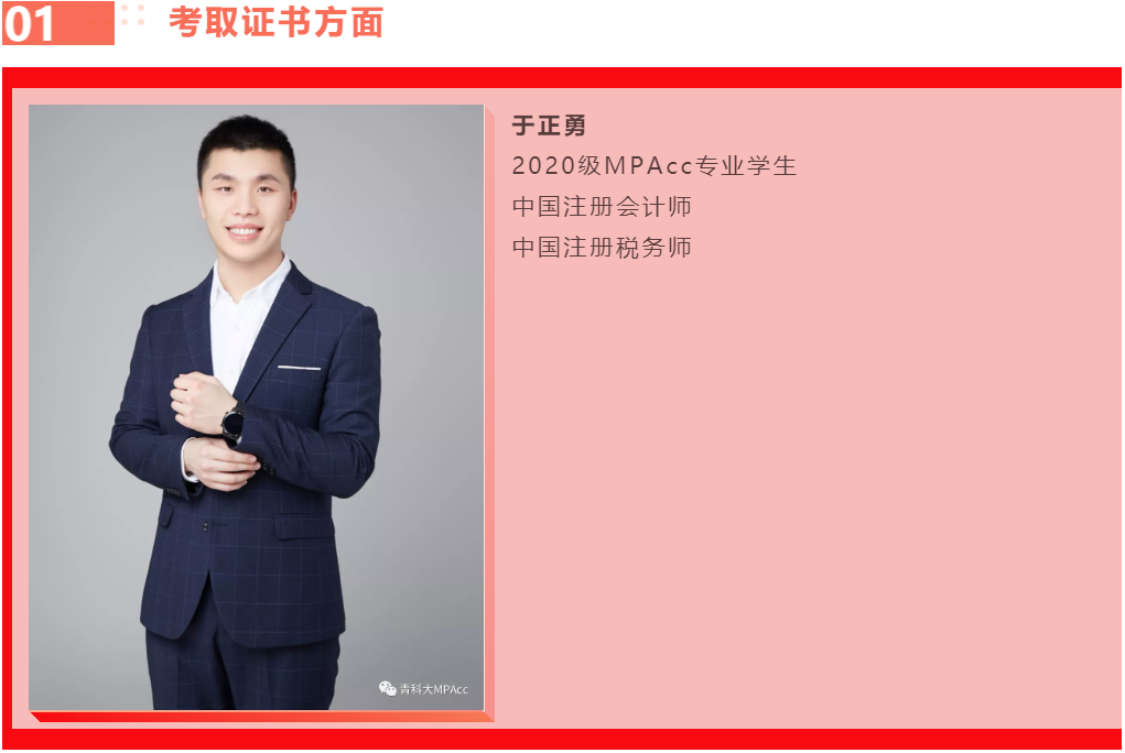 MPAcc专业,我考过了CPA综合阶段和税务师剩下的三门,很感激青科大MPAcc老师们给予我的帮助。